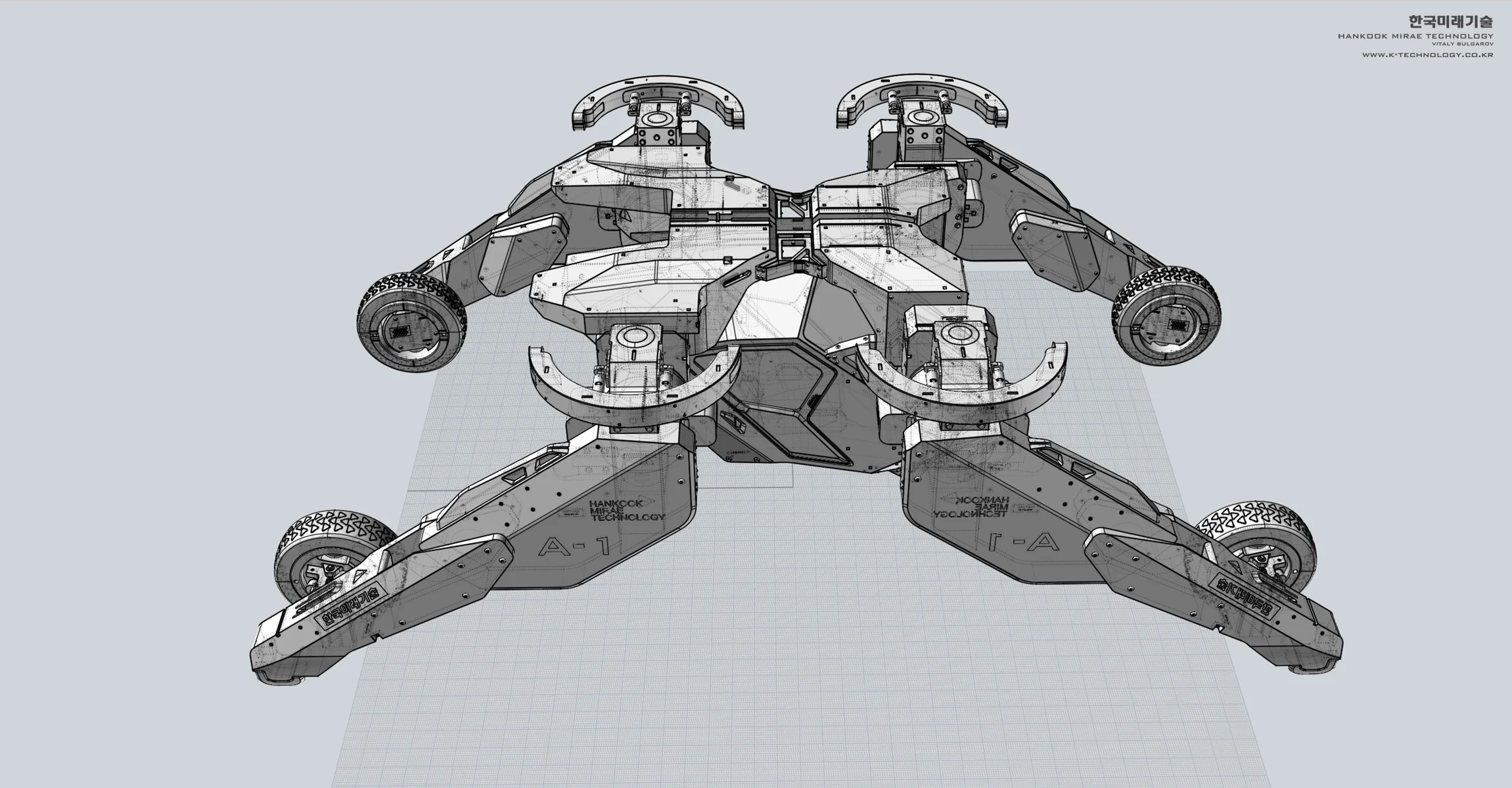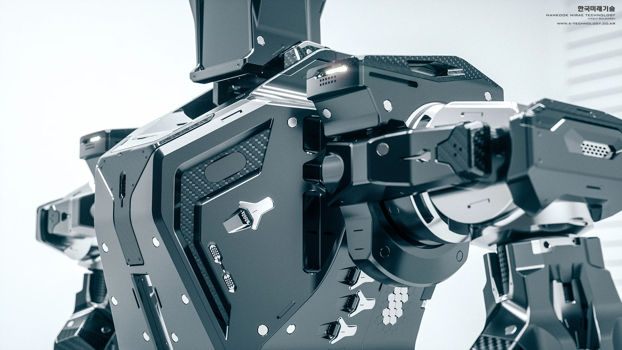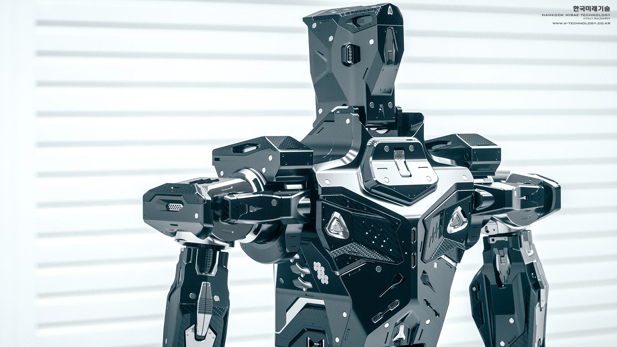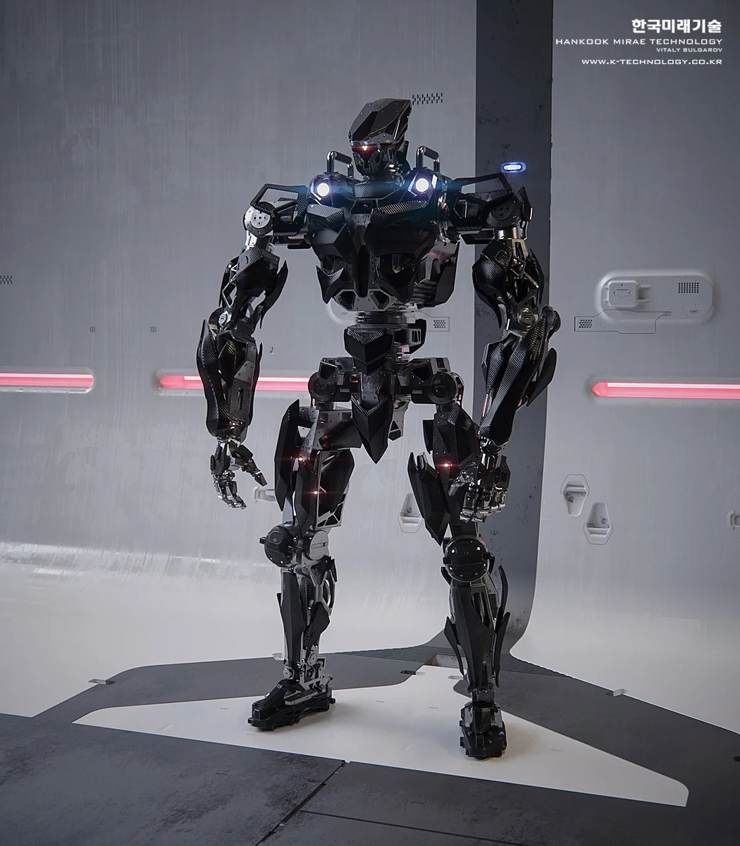 As a principal designer at Hankook Mirae I am responsible for creating the early concepts as well as the refined versions/exterior CAD of the selected designs that go through multiple rounds of rigorous feedback from the technical team and eventually get built as functional prototypes. These early stage ideas are more focused either on capturing the feel/character and/or exploring a specific feature of a design rather than trying to hit every single DOF/ROM requirement or fit every actuator within realistic dimensions. To find some interesting ideas I’d try sometimes more crazy stuff anticipating that it probably wouldn’t be realistically built but it would spark discussions in our team and hopefully serve as an early "blue-sky stage" inspiration. The soldier 3D scan model in some of the images is just for the scale ref, there is no intention to use any of these for military( at least not that I'm aware of).
