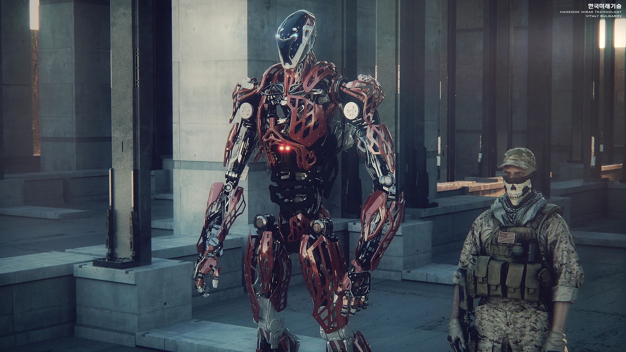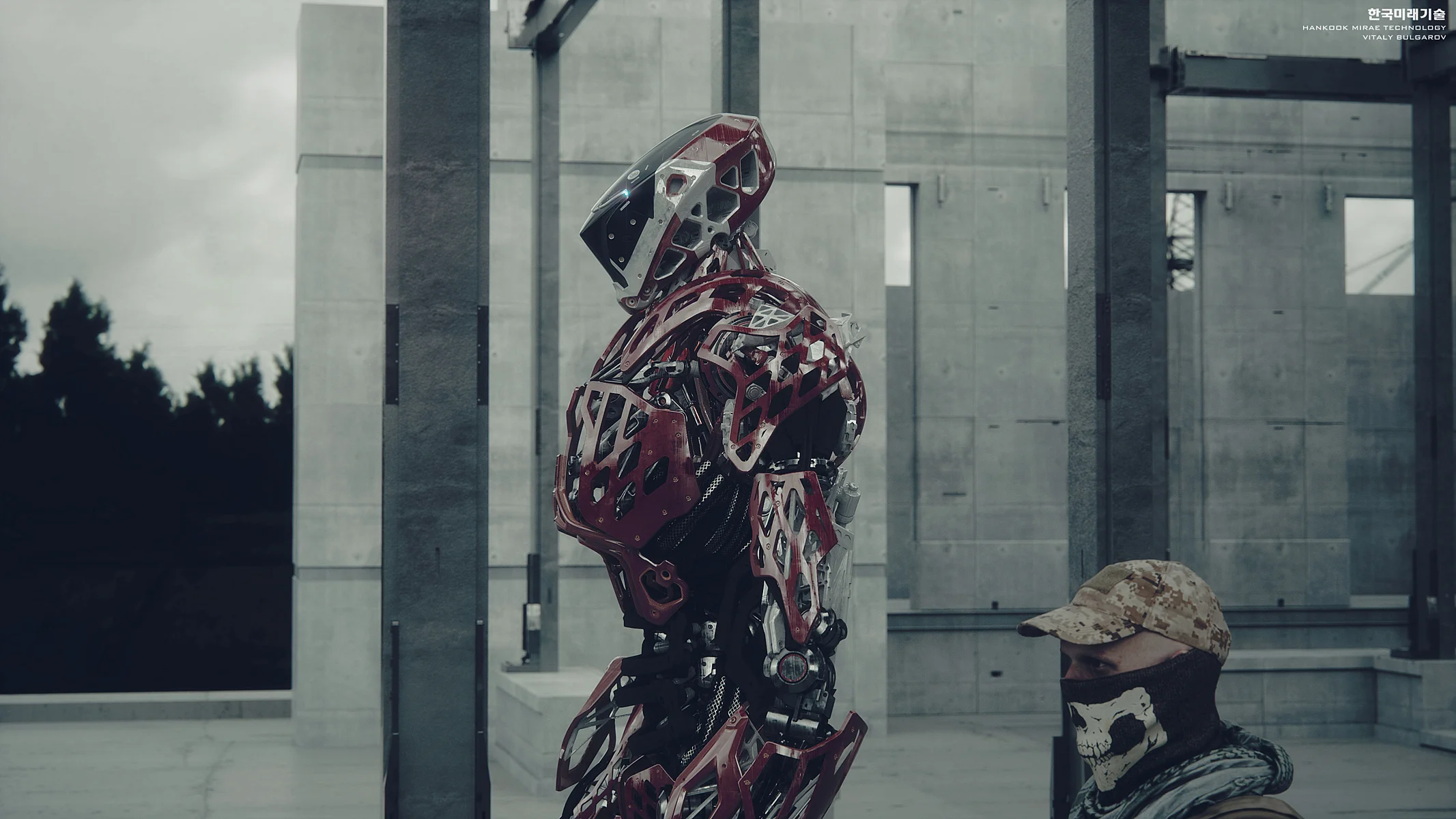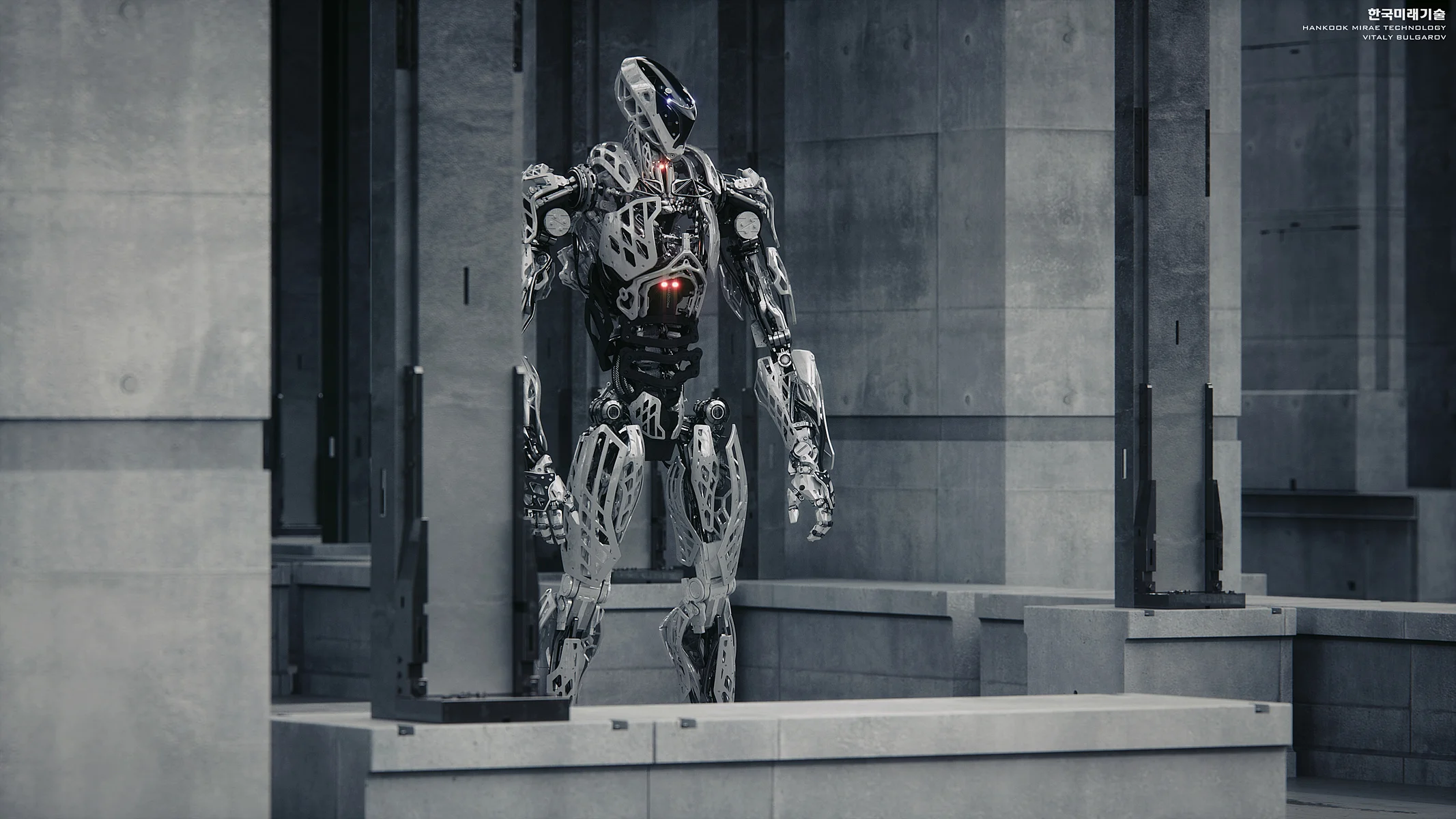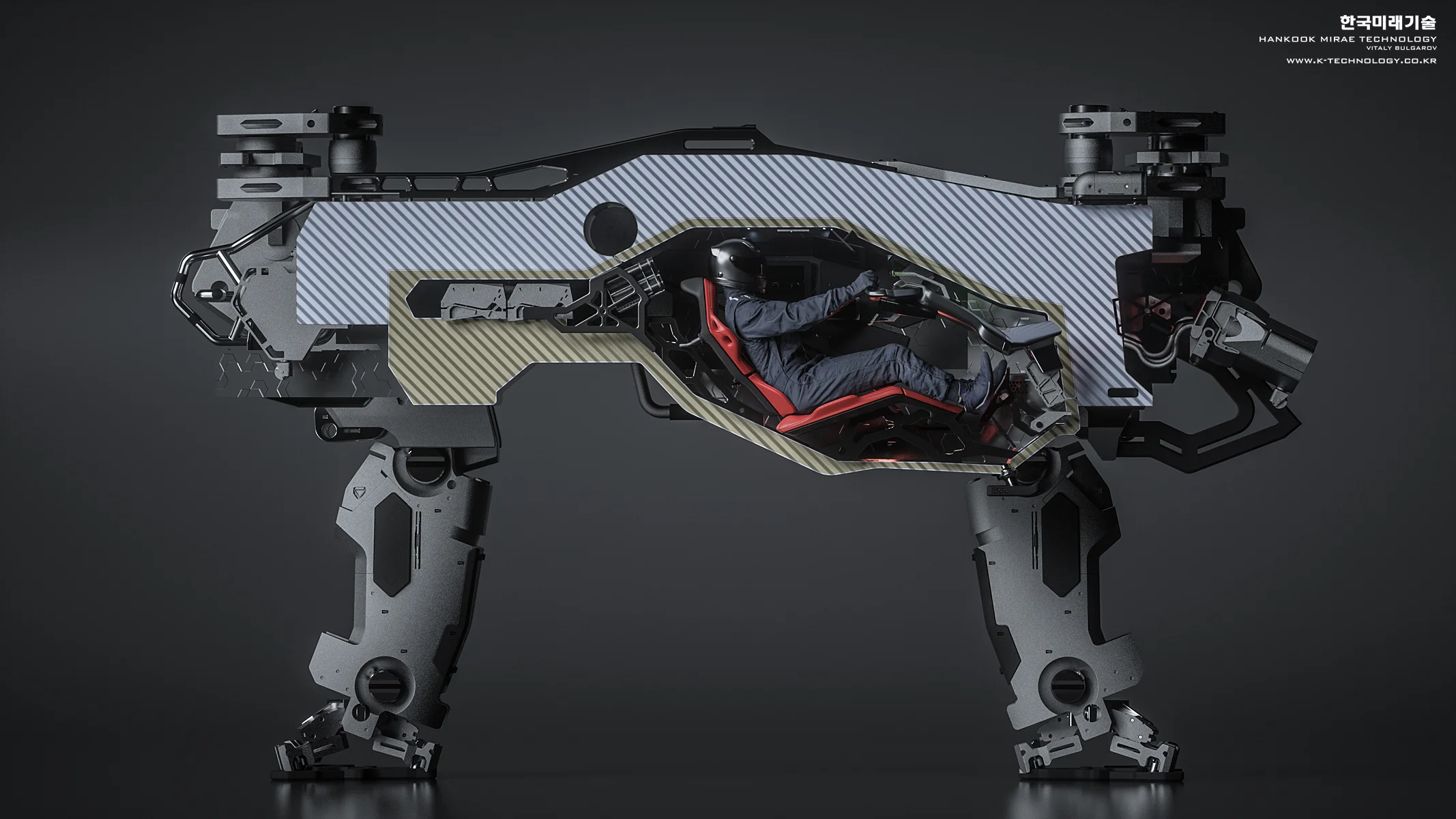 As a principal designer at Hankook Mirae I am responsible for creating the early concepts as well as the refined versions/exterior CAD of the selected designs that go through multiple rounds of rigorous feedback from the technical team and eventually get built as functional prototypes. These early stage ideas are more focused either on capturing the feel/character and/or exploring a specific feature of a design rather than trying to hit every single DOF/ROM requirement or fit every actuator within realistic dimensions. To find some interesting ideas I’d try sometimes more crazy stuff anticipating that it probably wouldn’t be realistically built but it would spark discussions in our team and hopefully serve as an early "blue-sky stage" inspiration. The soldier 3D scan model in some of the images is just for the scale ref, there is no intention to use any of these for military( at least not that I'm aware of).